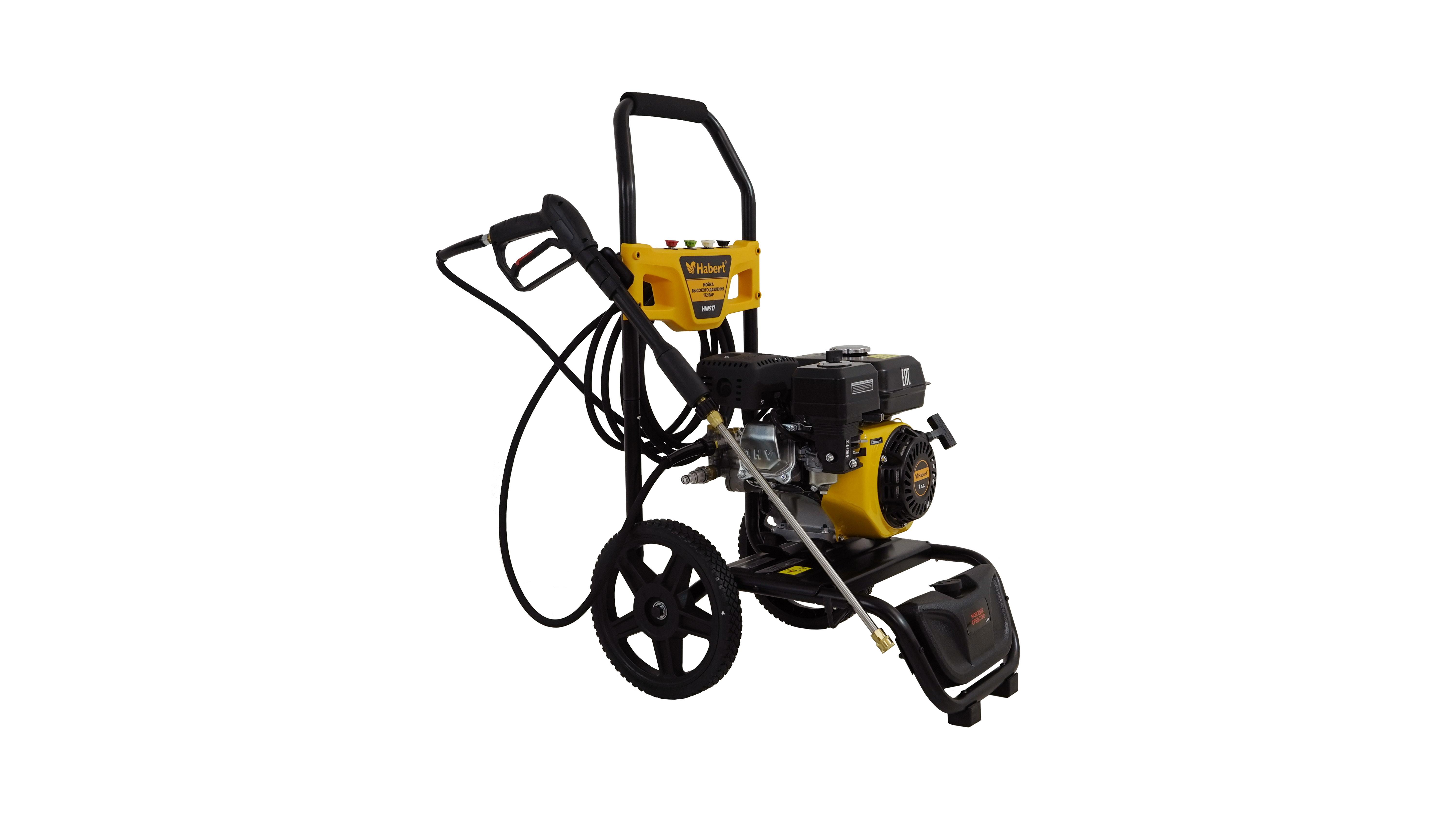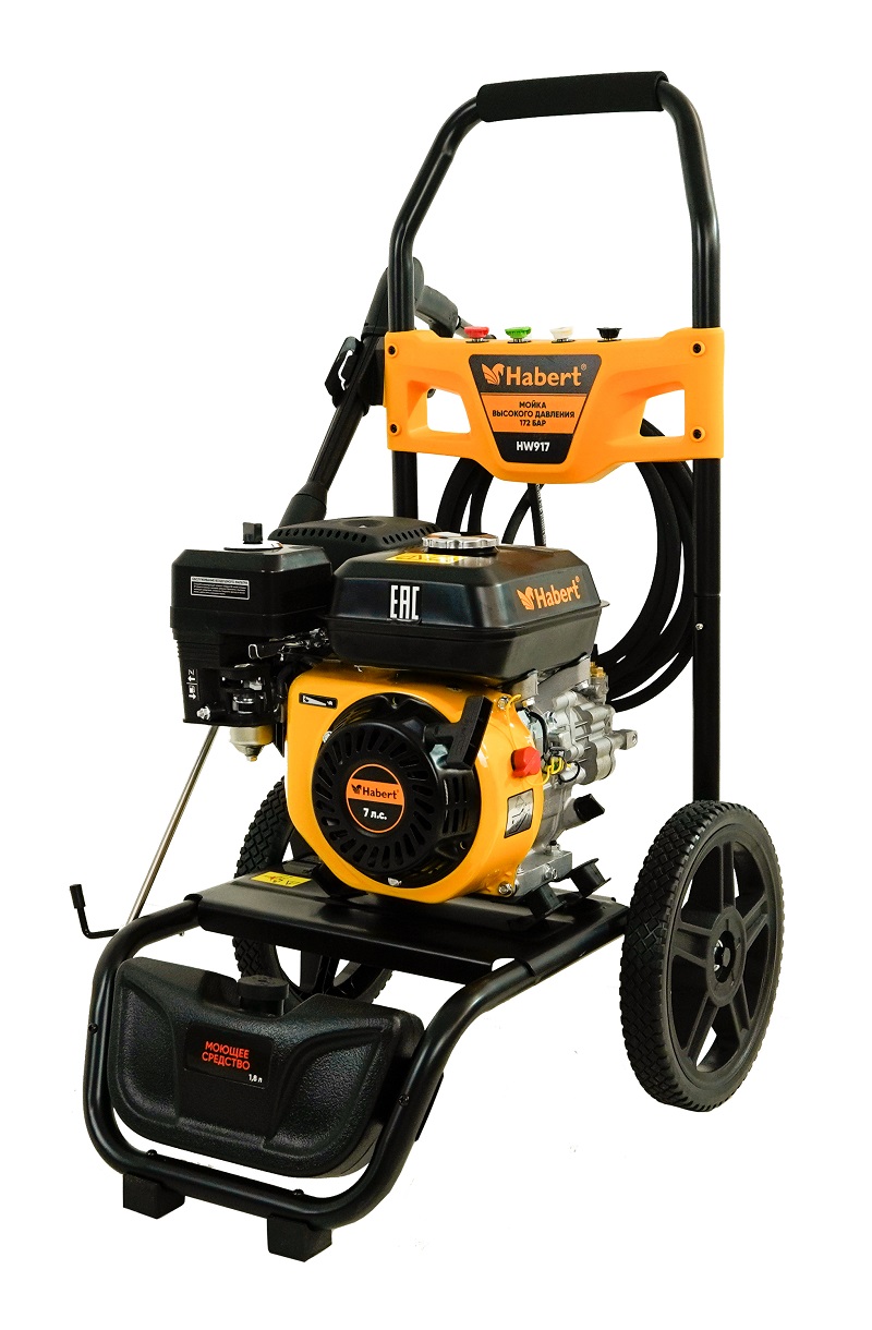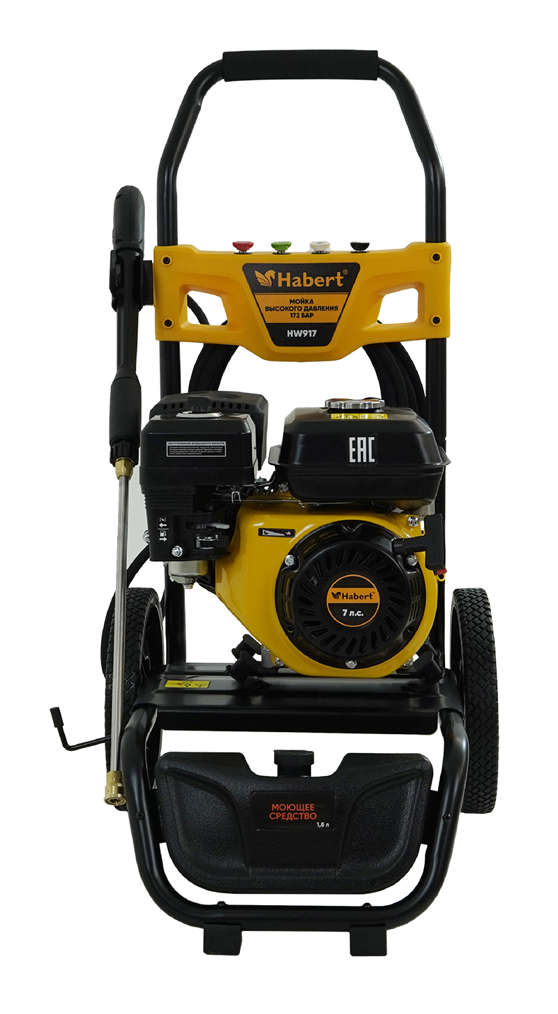Мойка высокого давления (АВД) Habert HW917 это автономный аппарат с бензиновым 4-тактным OHV-двигателем, предназначенный для очистки любых поверхностей струёй воды под высоким давлением в условиях отсутствия электроснабжения.